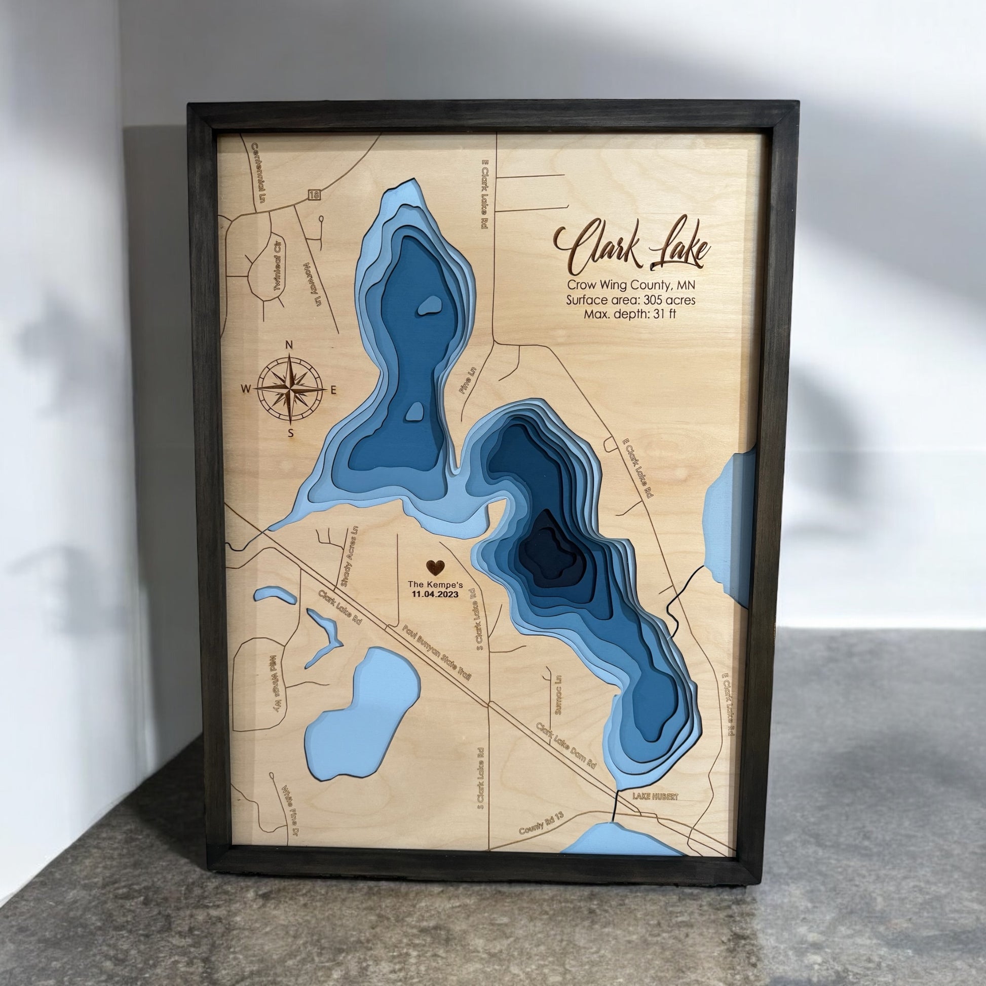 From boating and fishing to sunbathing, relaxing, and camping, there are so many reasons to love life at the lake! Bring Clark Lake home with you when you order one of our handcrafted 3D wood maps. We personalize to meet your specifications. Shop now!