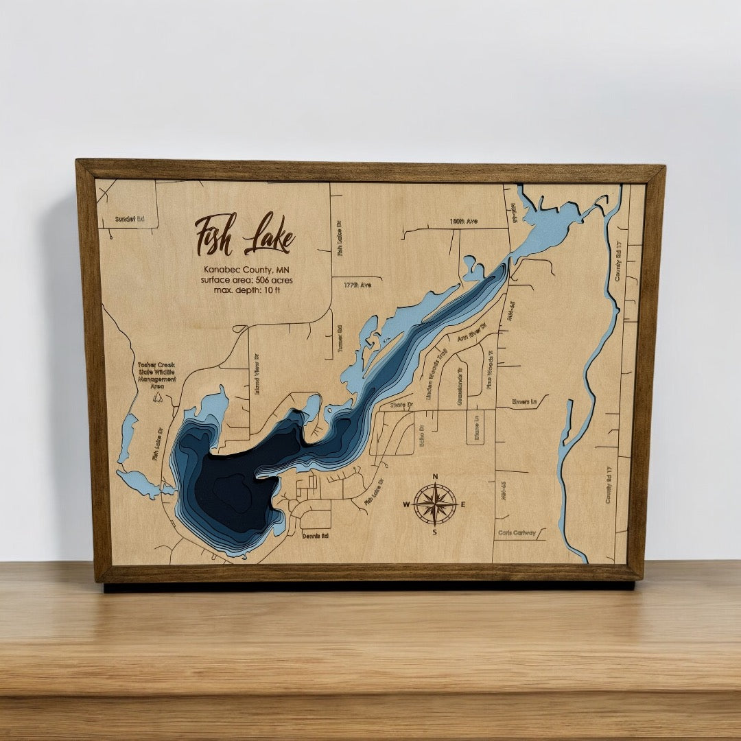 No matter what you love doing at the lake, you're sure to relive each of those great memories every time you look at your beautiful laser carved wood map of Fish Lake. At Sontoya Station, we take pride in providing high quality wood art to enhance your home decor. Shop online today!