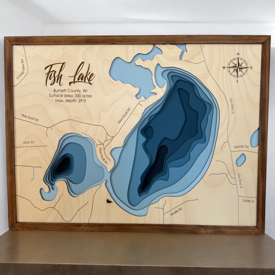 Bring the beauty of Fish Lake home with you when your order one of our custom 3D wood lake maps. They offer a captivating addition to any space, enhanced by the grain of the wood and our expert craftsmanship. Shop now and learn how we can personalize your piece!