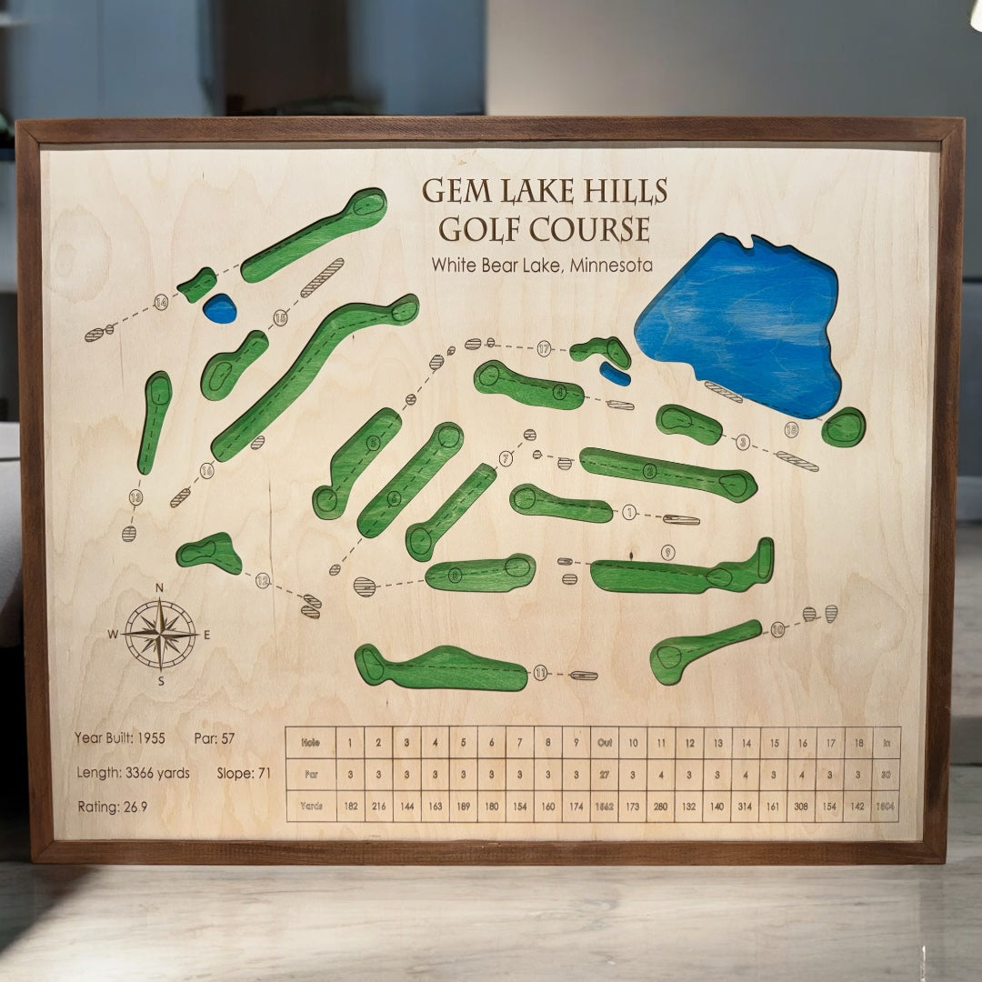 Looking for the perfect gift for the golfer in your life? Shop now to order a custom 3D wood map of Gem Lakes Golf Club, and provide a unique gift they'll cherish forever. We faithfully recreate each detail and can personalize your map!