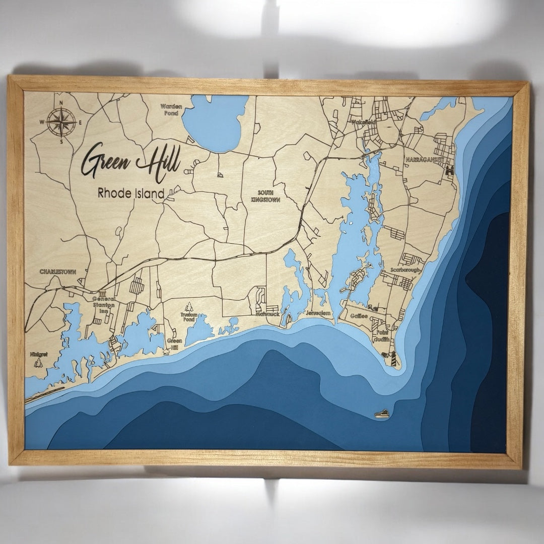 Green Hill is a popular destination for locals and tourists alike. Add a unique touch of decor to your home or lake cabin with a custom laser carved wood map. We craft the details that faithfully recreate the features that make up this lake.