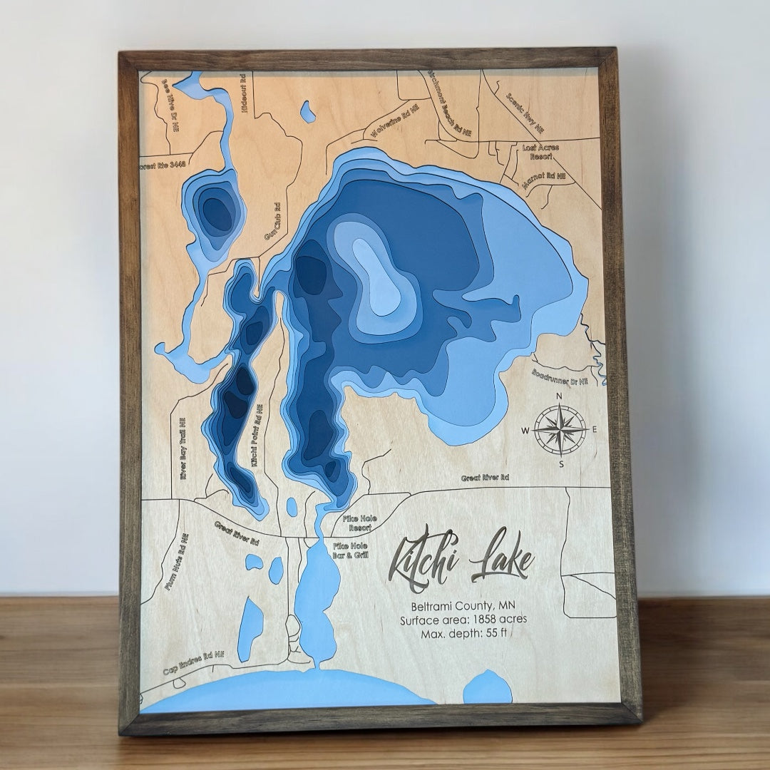 Hand Lake is a popular destination for locals and tourists alike. Add a unique touch of decor to your home or lake cabin with a custom laser carved wood map. We craft the details that faithfully recreate the features that make up this lake.