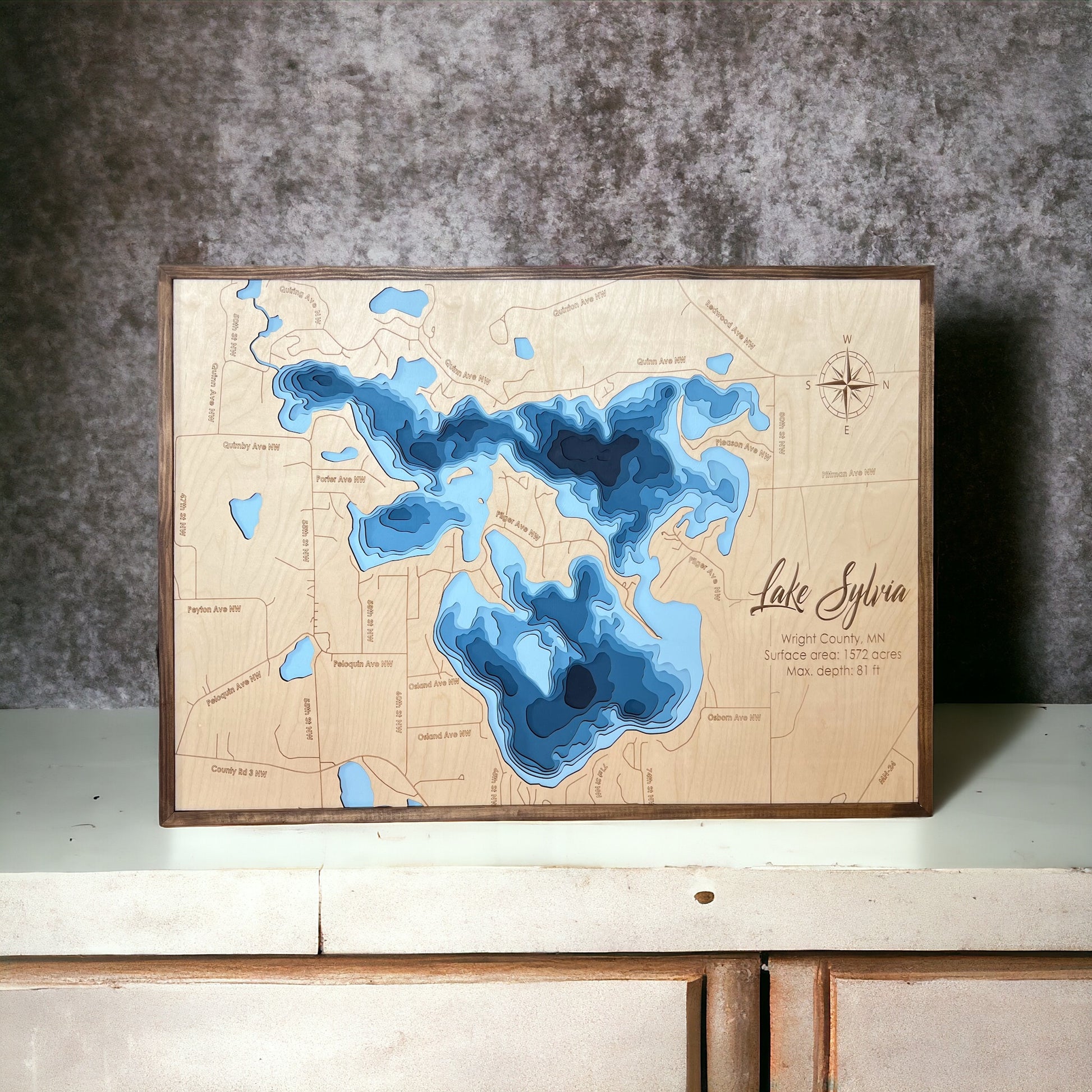 Lake Sylvia is unique because it is actually two lakes, east and west, connected by a channel on the north side, which is called The Narrows. Whether you have a favorite side of Lake Sylvia, or you enjoy the entire body of water, discover how we can provide you with the expertly crafted custom wood map that highlights every unique feature you love. Shop today!