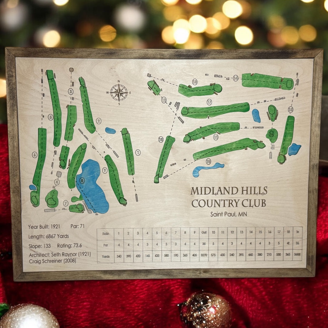 Get a unique gift for the golfer in your life when your order a 3D laser-carved wood map of Midland Hills Country Club, located in Saint Paul. We proudly handcraft each order so you're sure to get the quality you deserve. Shop today!