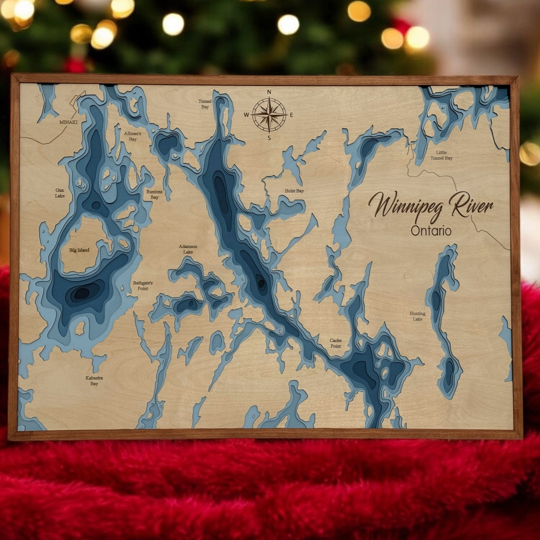 Bring the beauty of the Minak Lake home with you when your order one of our custom 3D wood lake maps. They offer a captivating addition to any space, enhanced by the grain of the wood and our expert craftsmanship. Shop now and learn how we can personalize your piece!