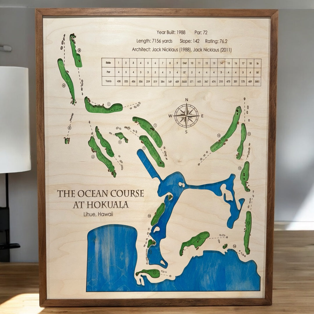 We proudly craft each wood golf map with the artistic eye and attention to detail that make your favorite golf course come to life. Whether your heart belongs in Brandon Dunes, August National, or Pebble Beach, we'll provide you with the beautiful wood art you deserve!