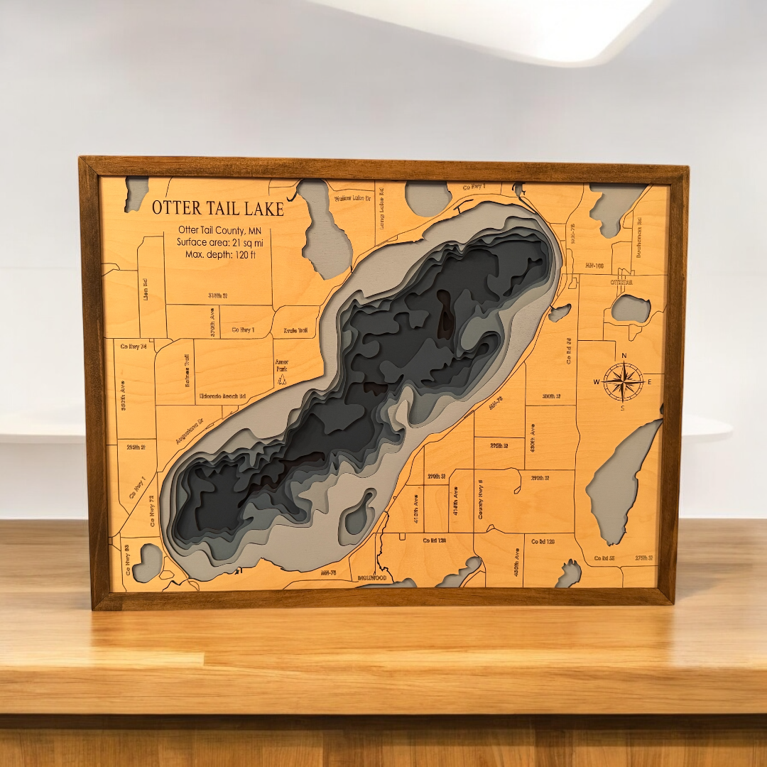 Relive your fond memories from Ottertail Lake and tell your favorite story of "the one that got away" whenever you look at your gorgeous 3D wood map from our online store. We proudly handcraft each detail to provide you with the quality home decor you want. Shop now!