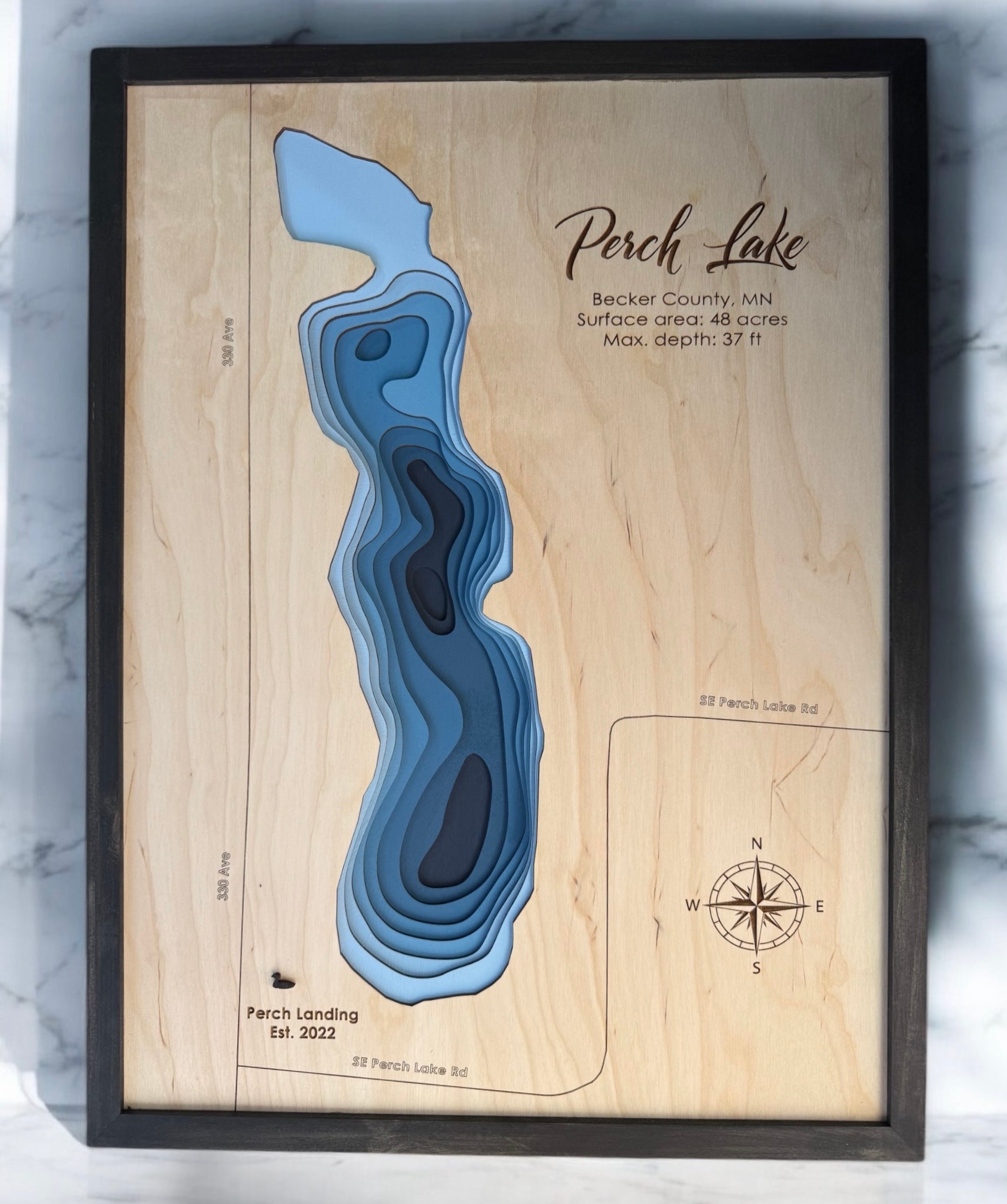 Whether you are shopping for yourself or for a gift, we know you'll be more than satisfied with our gorgeous wood carving of Perch Lake. We faithfully recreate each detail so you can proudly display your love of lake life in your home or cabin. Shop now!