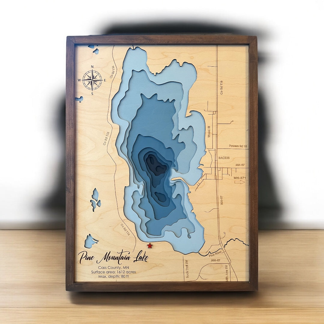 Our map of Pine Mountain Lake is a unique homage to your favorite body of water. Whether it's a cherished childhood fishing spot or your serene getaway, this personalized masterpiece brings the essence of the lake into your home. Shop now!