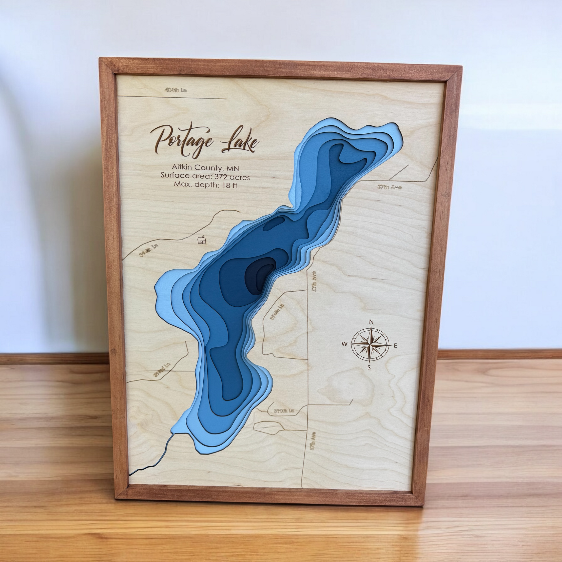 Whether you live on the lake full time or simply vacation there, we know you'll love to hang our 3D laser carved map of Portage Lake in pride of place in your home or cabin. Each map is custom made to order, so be sure to check out our personalization options!