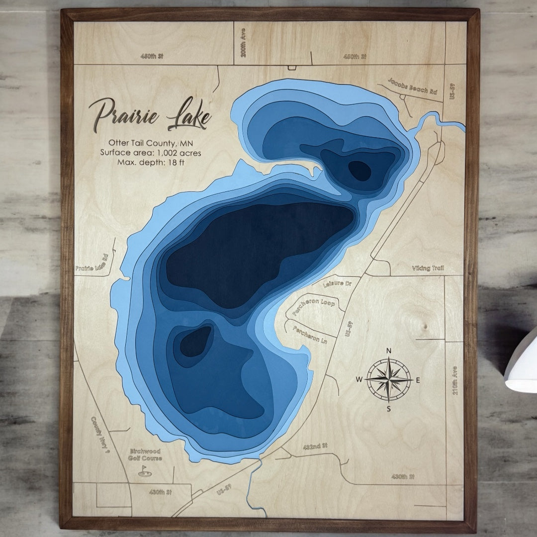 The natural beauty of wood, combined with expert craftsmanship, make our 3D wood lake maps a captivating addition to any space. Proudly display your custom map on your wall, mantel, or as a centerpiece for lake-themed gatherings. More than a map, it's a conversation starter, a reminder of cherished moments, and a symbol of your connection to the water.