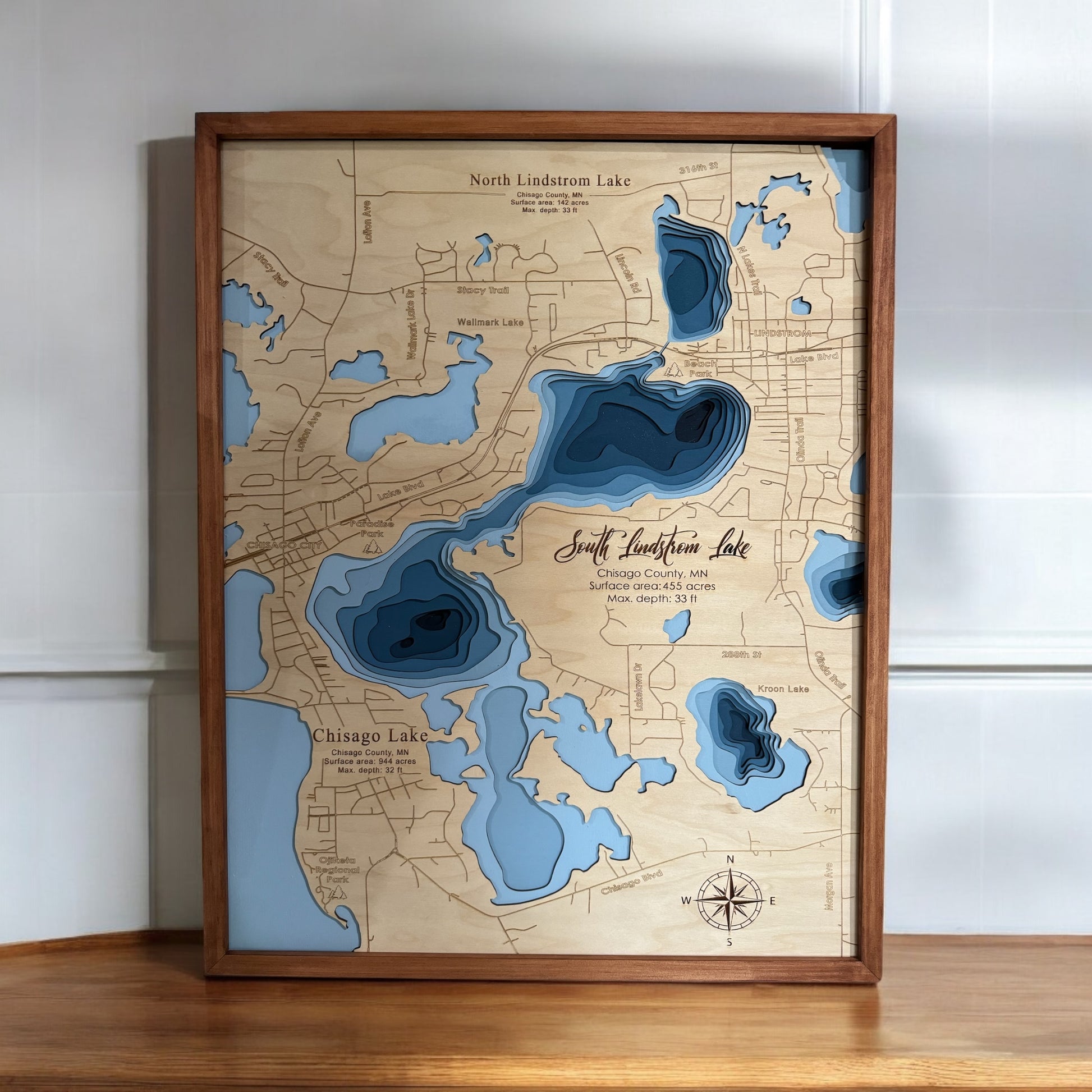 Whether it's a cherished childhood fishing spot, a serene getaway, or the backdrop to unforgettable memories, this personalized masterpiece of South Lindstrom Lake brings the essence of the lake into your home. Shop today and buy a unique homage to your favorite body of water!