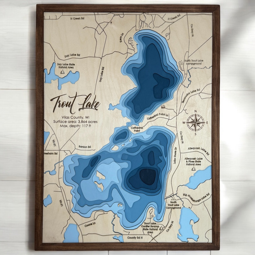 Add a touch of rustic charm to your decor and celebrate your love for lakes with our handcrafted wood map of O'Dowd and Thole Lake. Relive your memories of time on the water each time you look at your personalized piece of art. Shop now!