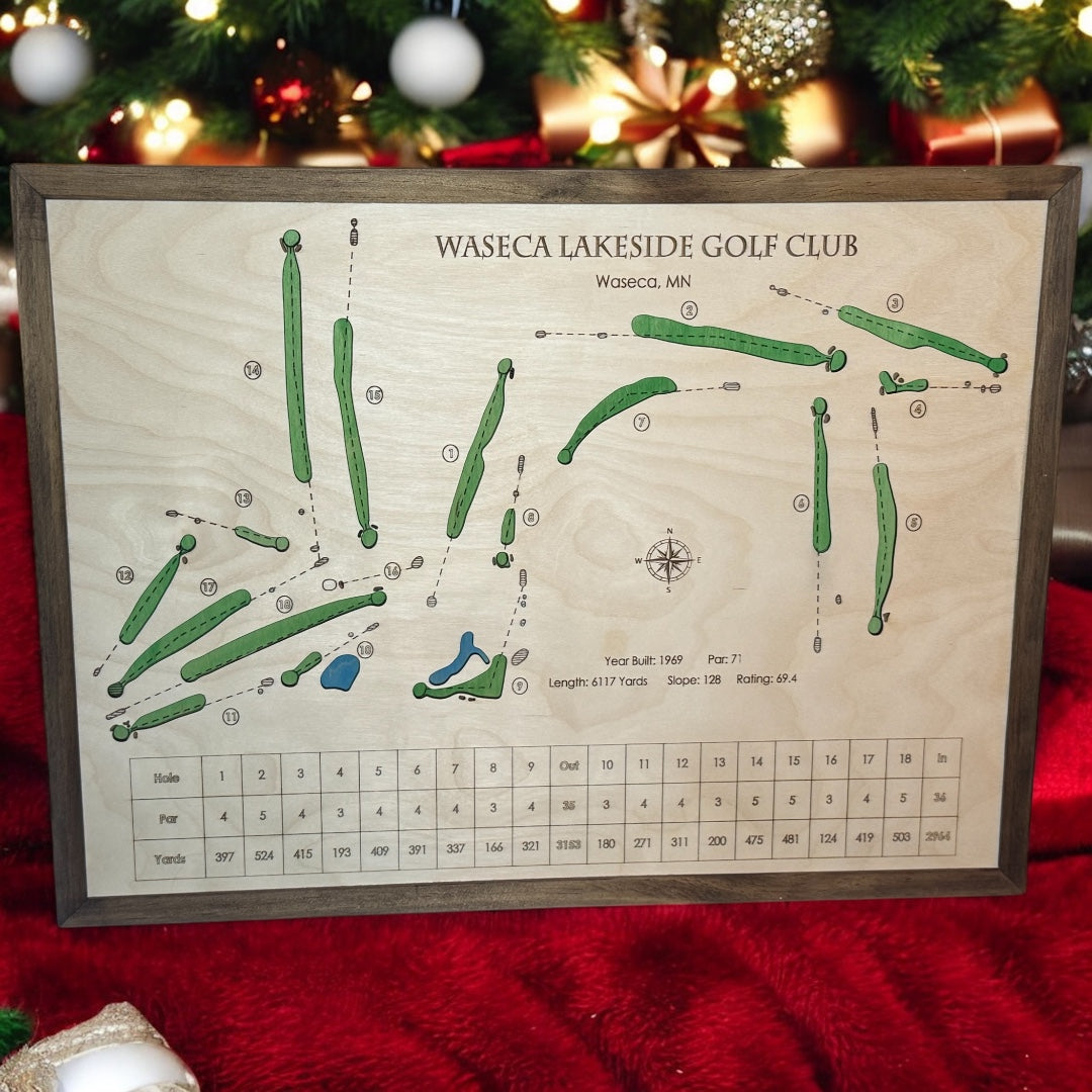 We customize each golf course map to your specifications, ensuring accuracy and personalization. Known for a course that caters both to beginner and experienced golfers, it's easy to see how Waseca Lakeside Golf Club earned a place in your heart. Bring your favorite golf course home with you when you shop our online store today!