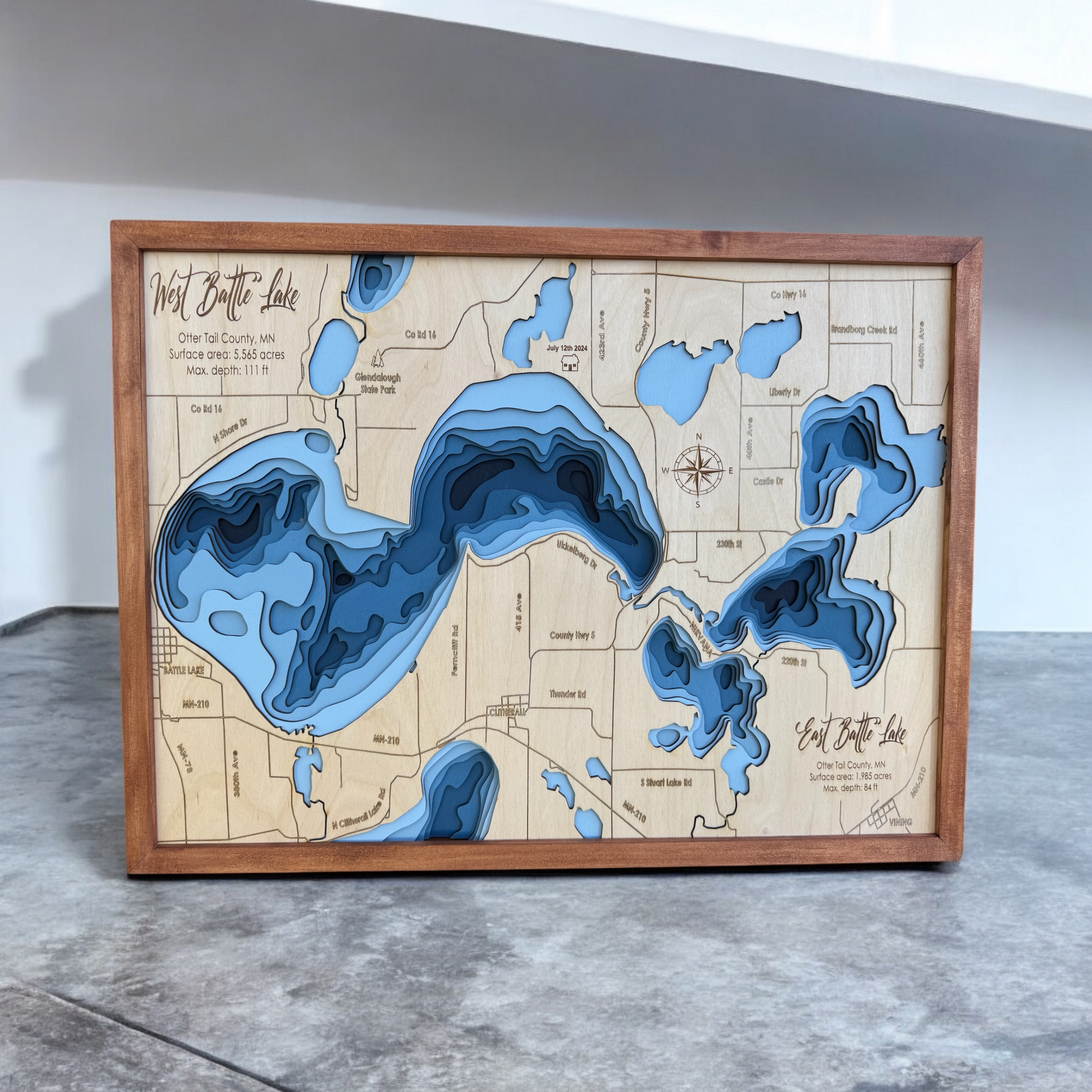 From fishing and boating to gorgeous scenery and more, there are many reasons why you love these two lakes. We proudly offer hand carved wood maps that display every unique feature you love. Shop now to order your home decor and check out our personalization options.